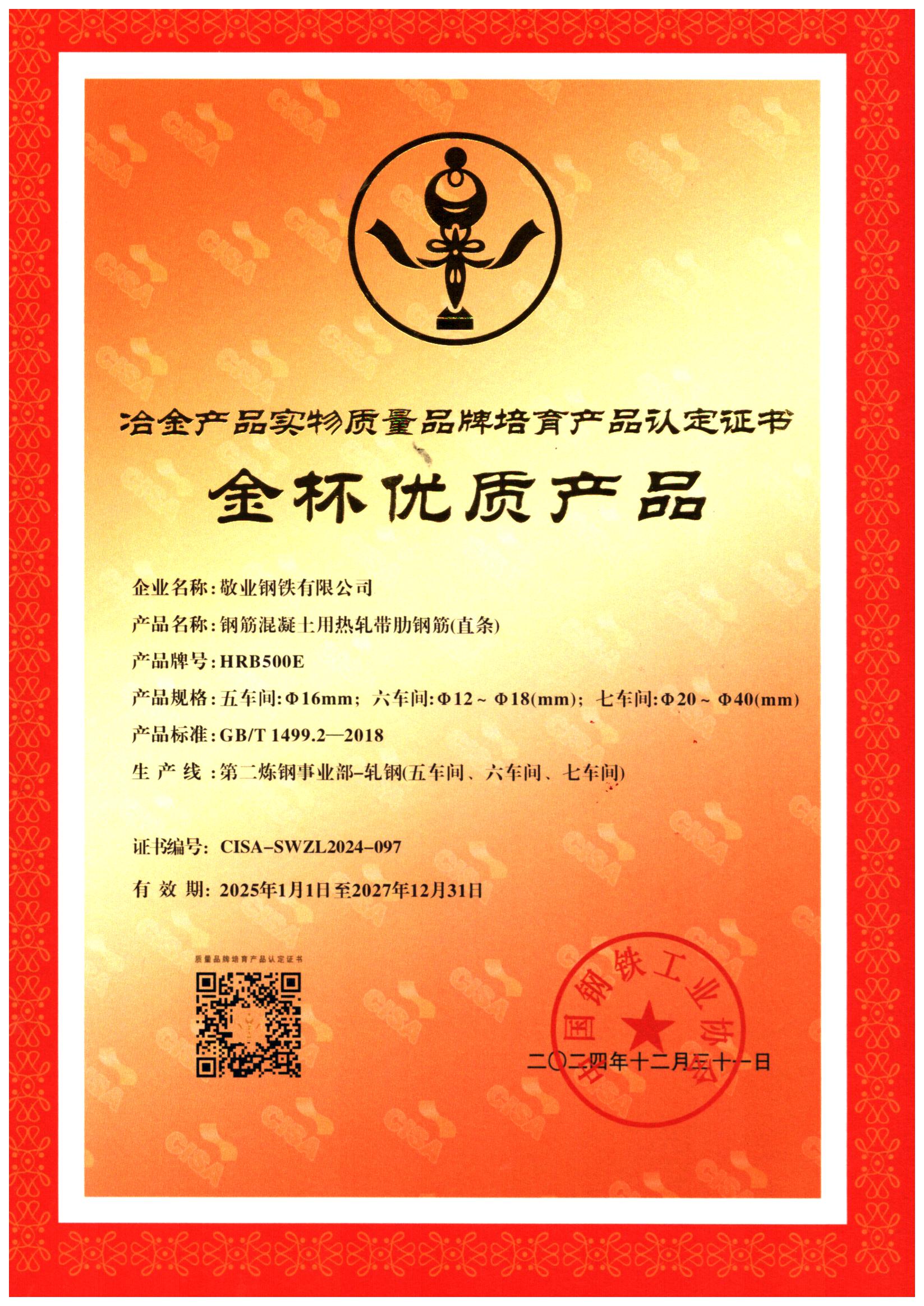 7.2.7证书--敬业钢铁有限公司质量管理体系